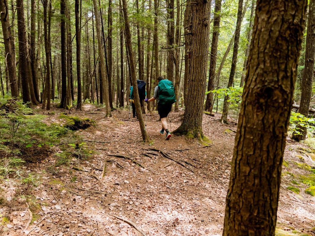 So it was that we jammed 2 full tents into the shelter, and each of us had the pleasure of bonking our heads on the low-hanging wooden beams at least once. After the sun went down, the night sky did its best impression of a down-on-his-luck Atlantic City DJ with a dream but no talent, flashing lights and booming thunder bass but forgetting to play any actual music (i.e., it didn’t rain again) until the middle of the night. We all eventually got some sleep, woke up the next day, strapped on our wet shoes and headed out.
