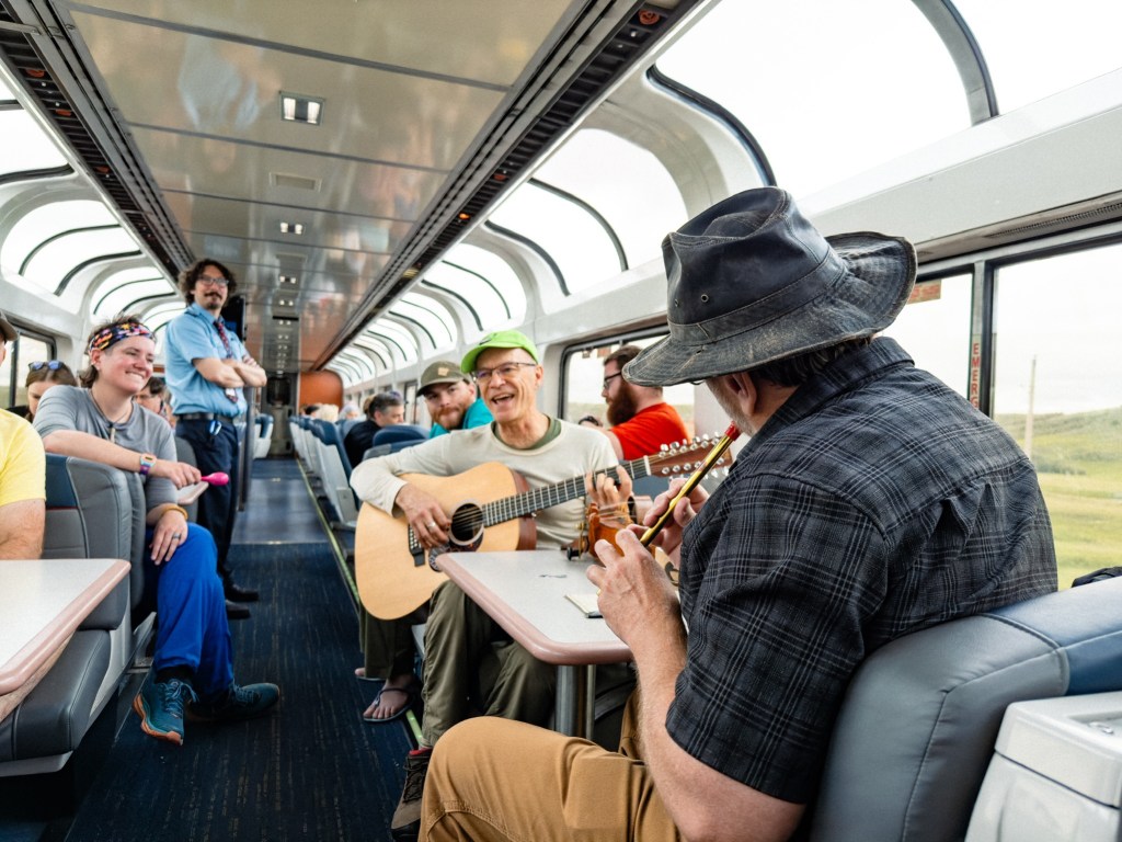 What happened next felt like a dream. Another musician, named Jeff, with a white beard and an Indiana Jones hat, appeared with a 12-string guitar and a tin whistle. For the next 2 hours, the observation car was full of music, singing, and laughter, as we trekked across the great plains, nature surrounding us in beauty. As is the magic of musicians, A noted that Dave and Jeff didn’t even exchange names until an hour into playing together.