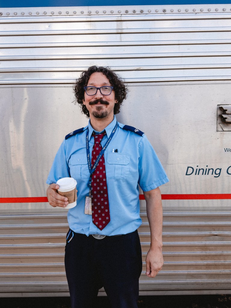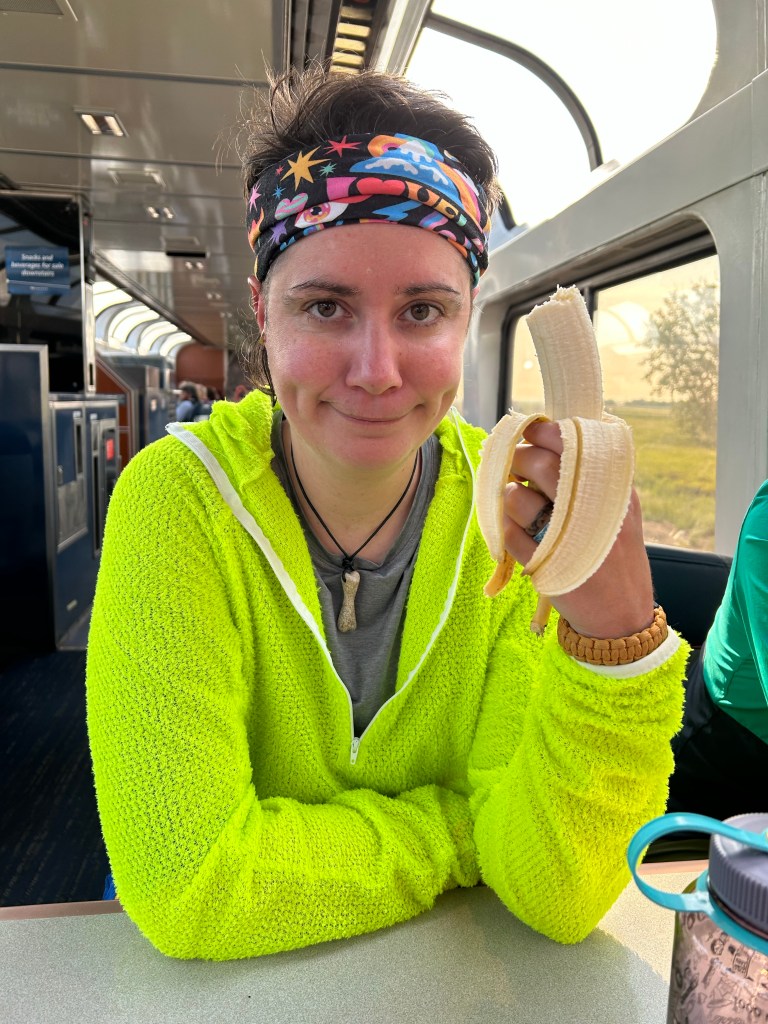 I had just settled down back in my seat, after having had a breakfast of banana and beef jerky in the observation car with everyone. We’d all slept MUCH better on this second train, the “Empire Builder,” that runs along the upper border of the USA between Chicago and Seattle. Not only was the overhead lighting pleasant and blue once the sun went down, but our seats were upstairs on a double-decker train car. While in Chicago, I met one of our conductors, Andy, who is hands down one of the most delightful and kind people I’ve ever met. He not only helped me to secure some great seats for our party, but he was also on the train with us for the entire journey. If someone told me that Andy had sprung fully grown from a magical fairy ring somewhere in Middle Earth, I wouldn’t question it.