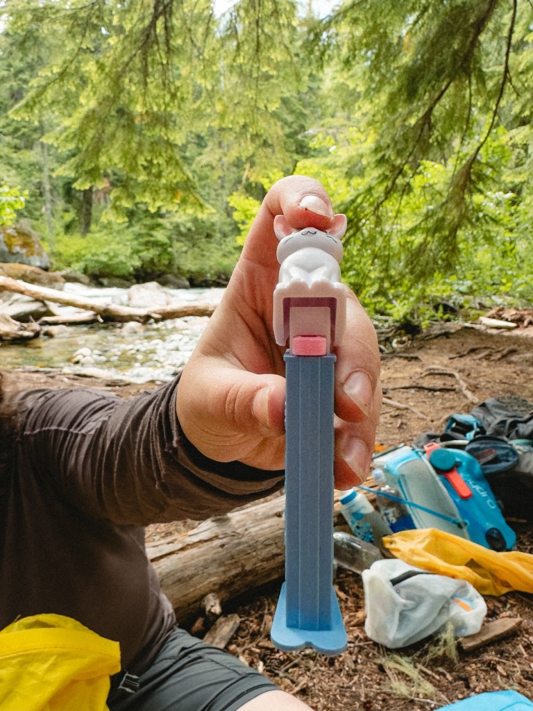 At the end of the first day, as we were all in various states of getting our tents set up and making dinner, Scope gestured silently for me to come over to her. Like a magic trick, she produced a Pez Dispenser with a white rabbit on the top of it. As she pulled back the rabbit to dispense a bright pink candy morsel for me she said,
