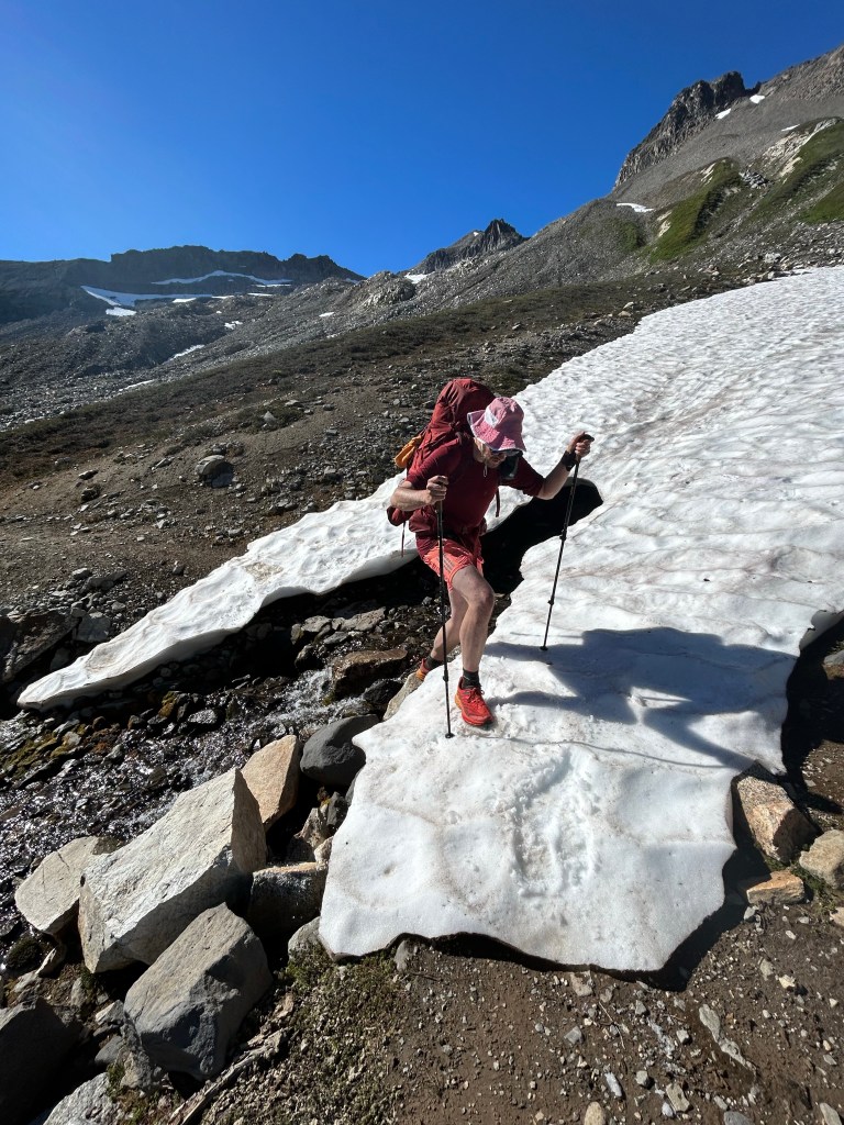 What that meant though is that for 9 of the 10 days, it was only Dumptruck, Toasty and I in the great unknown. We met several incredible hikers along the way, including Riddles, who had a spectacular laugh, a genuine kindness, and the knowledge that the hundreds of giant fluffy critters we’d seen galumphing all around the mountaintop meadows were indeed marmots, and not just groundhogs with perms. We met a lot of encouraging Snow-Bos, as well as someone’s dad on a small hike just outside of town on the last day who said he was proud of us. I know my Dad is proud of us, but man, sometimes in the middle of the woods when you may or may not have continually wept for the past 2 hours because you have a debilitating migraine that you hiked 1,500 feet of elevation in 90 degree blazing sunlight through, having a dad say he’s proud of you can really bolster a fried spirit.