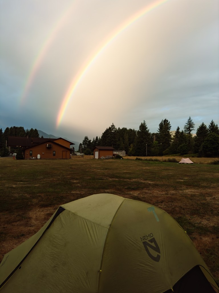 P.s. Yesterday we pulled into White Pass, got a hitch to Packwood, and are staying in an open field behind an inn, where they give you a towel and a broom closet to shower in for $15 a night. This morning I woke up to a double rainbow. All in all, pretty darn magical.