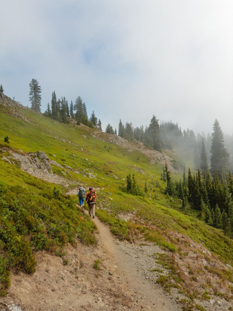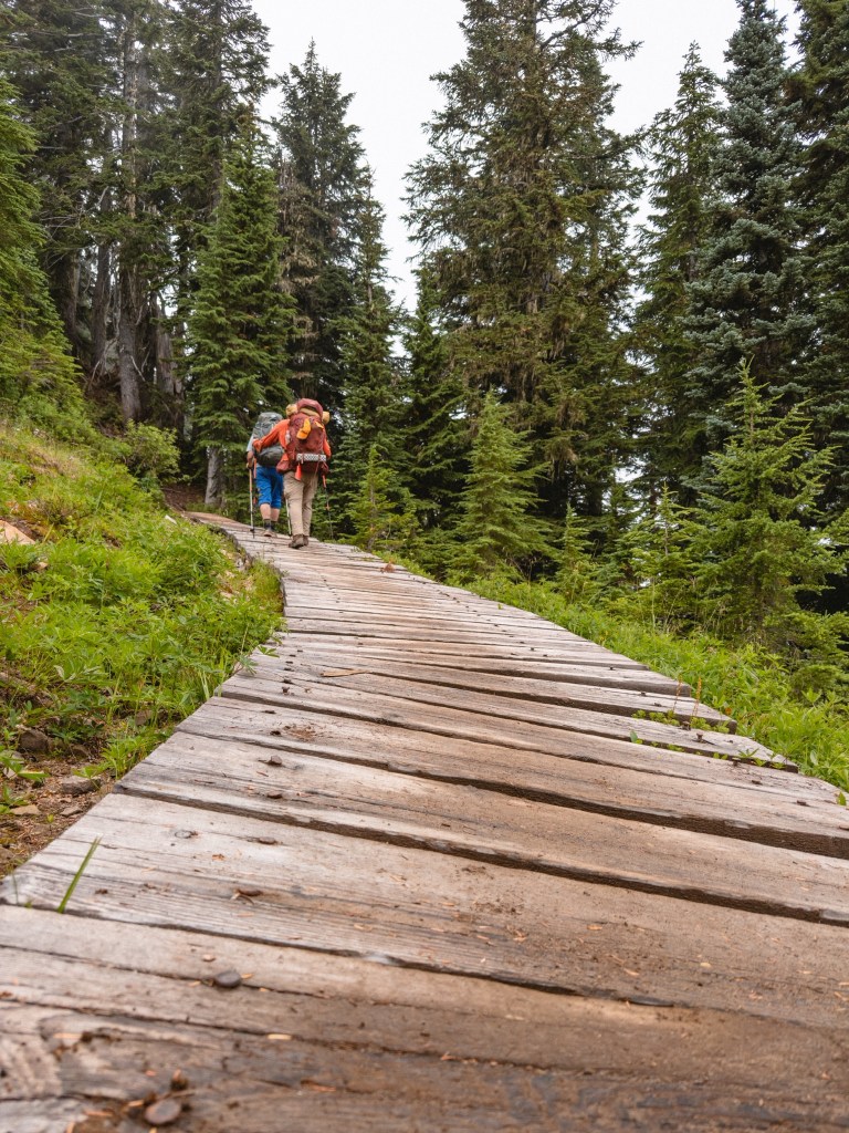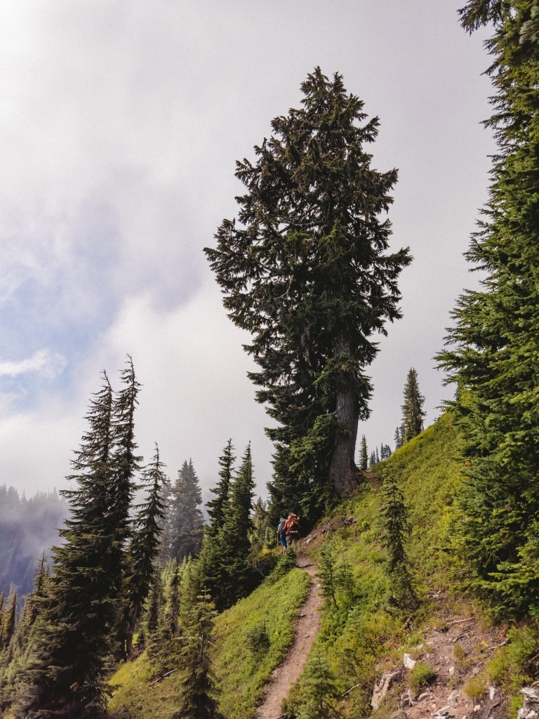 This section of trail between Snoqualmie and White Pass was the first time that our hiking family truly understood what folks are talking about with the PCT being non-aggressively graded. Meaning, the steepest incline and/or decline we encountered in this section was only about 9% (for context, in the Glacier Peak Wilderness the grade was at times 19%). Also, the trail here had a lot more dirt road access, which meant that the trail was beautifully maintained. We finally are averaging about 13 miles a day, and had a couple of 15’s in there. This happy change could also be a reflection of our regular-life jelly legs finally building into hiker legs. Don’t worry, we still had a fellow SoBo fly past us one evening, hand waving happily as he hollered “Sloth Squuaaaad!” at us, and we yelled it back at him happily.