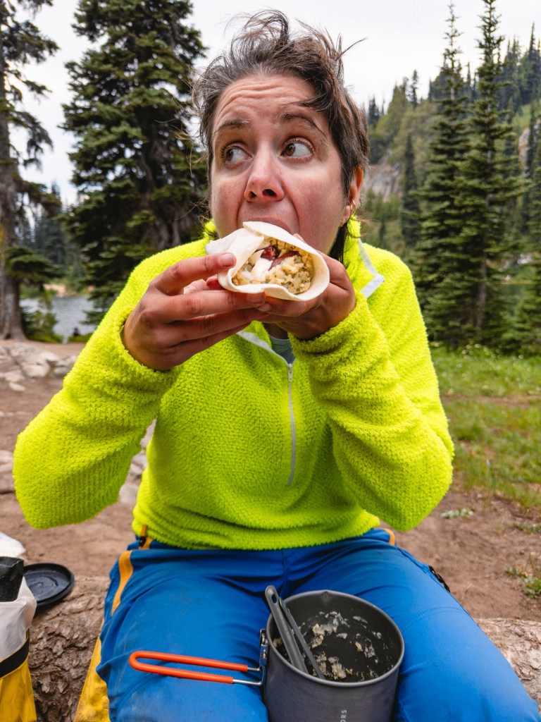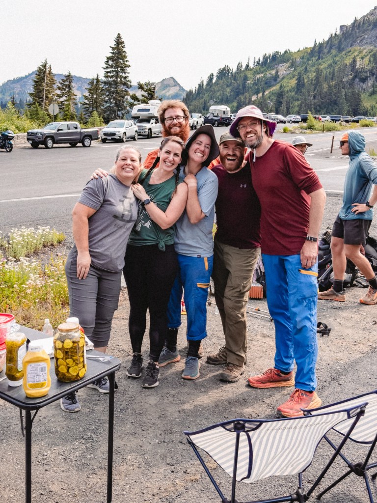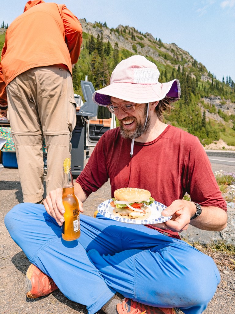 Mindy and Leslie, section hikers who live near Chinook Pass, had decided that this was the first time they wanted to do trail magic. True Trail Angels, they had a BBQ spread that would put even the most ardent grilling dad to shame. We sat in a circle with several NoBos, all of us munching gleefully on the best food we’d had in WEEKS, tears in our eyes and joy in our hearts.