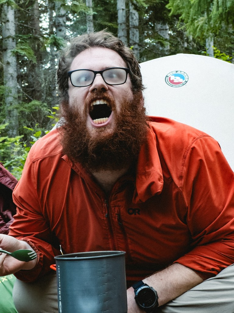 Speaking of tears, this is the section that the Sloth Squad has finally dropped from 4 to 3. Toasty, our proud Pun Commander, Planner of Mileage and Master of Bear Bag Hangs, had to officially end his thru-hike and make his final ascension to Trail Angel. It was always the plan that he would hike for a month, then get off-trail, return home briefly to retrieve his car, then come back West to work remotely and also provide trail magic to hikers. He will be able to occasionally hop on and do small sections with us, and we’ll see him when we get into towns, but it’ll be different. We were all devastated and simultaneously excited. The 4 of us wept openly and had a group hug before Toasty hitch-hiked away to Seattle at a road crossing, my face getting absolutely crushed between the chests of Argie and Dumptruck, my tears soaking into the dirt of their hiking shirts as we all clung to each other. We were family before this, and we’ll be family after, but not being together in this way felt like our hearts had became dandelion puffs, the pieces gently being carried away into the wind on the breath of a dreaming child.