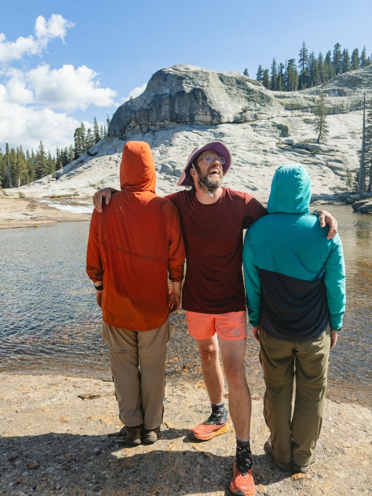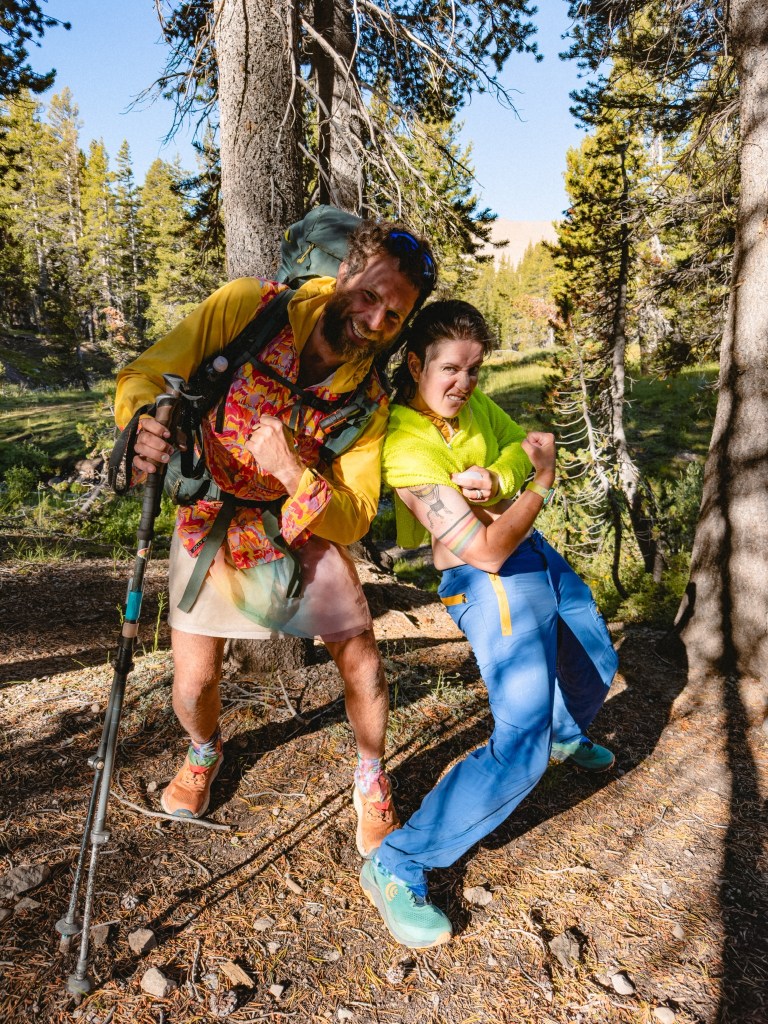 Indeed, the mosquitos had descended upon us in a cloud. Rainbow scampered away, his colorful form cutting a path through the curtain of blood-sucking insects. As he disappeared, I delivered the bad news to Dumptruck and Argie: I had to pee. So it was that I found myself crouching in a grove of bushes off trail, my arms waving manically over my head, as Dumptruck aggressively swatted the armada of mosquitos away from me. If you’ve ever wondered what true love looks like, it looks like voluntarily whacking a swarm of biting insects away from the exposed rear end of your partner while they cry, laugh hysterically and pee at the same time. On the other side of the bushes, Argie faced away from us to give us some modicum of dignity, and put on his mosquito head net. I heard the rustling of him getting the net into place, and then he shrieked,