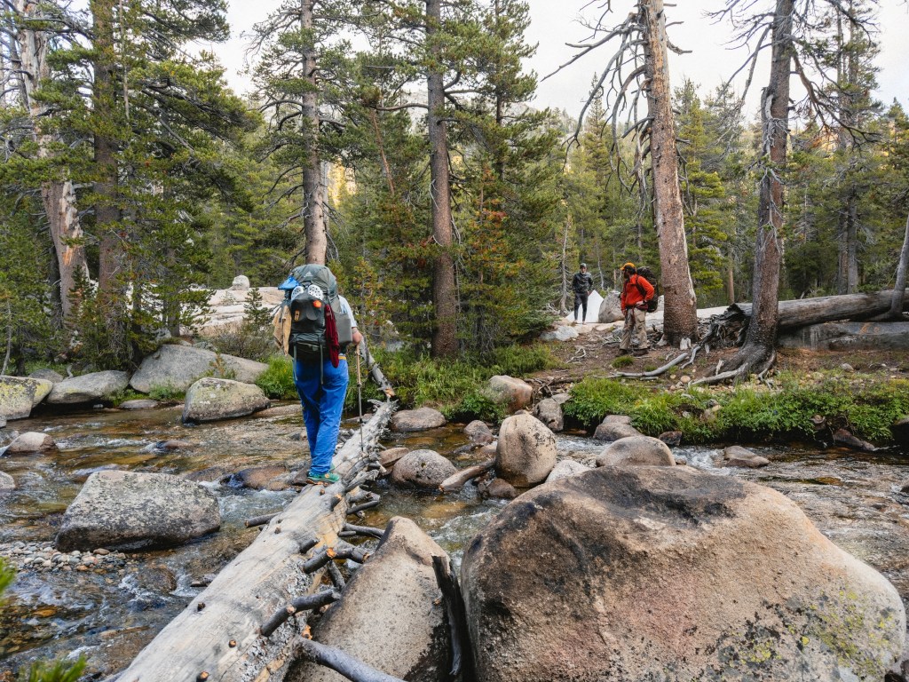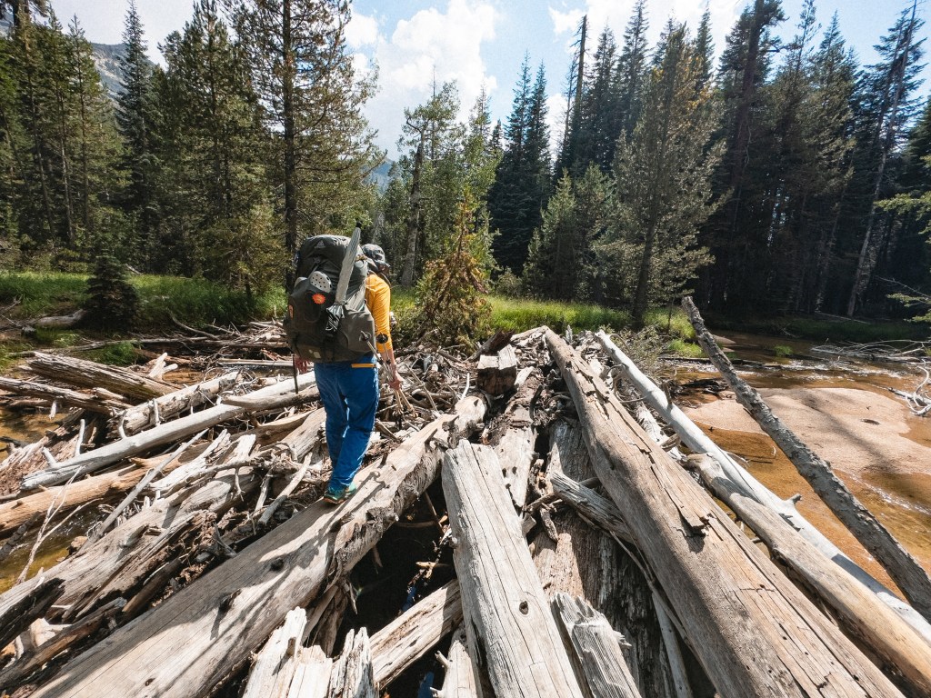 There have been a multitude of easy river crossings, the water slow and chilly, clear as glass flowing over sandy, rounded rocks. The rivers are so gentle and knee-deep at deepest, that the easiest thing to do is just remove our shoes and cross barefoot (or, in my case, my recently acquired Crocs). However, this has not been enough of a protective factor to shield us from the inescapable hubris of man. Meaning: if there is a potential rock-hop or thin log laying over the river, it is so hard to resist trying to cross in regular shoes, thinking to save the 5 minutes it would take to just wisely change out of them.