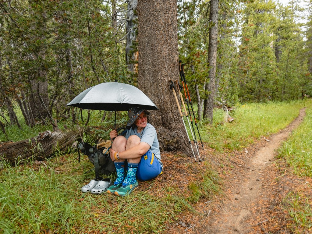 About 20 minutes later my adrenaline crashed, leaving their protective posts and flinging the doors wide for my brain to comprehend just how injured I was. The pain signals that had been patiently loitering in the waiting room of my neuropathy all bum-rushed my brain and started a raging mosh pit. I took a sharp inhale of breath and announced to Argie and Dumptruck that I just needed to cry for a couple of minutes. They kindly understood and stepped off trail with me. That was the moment that Rainbow found us.