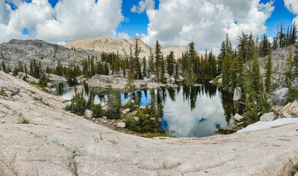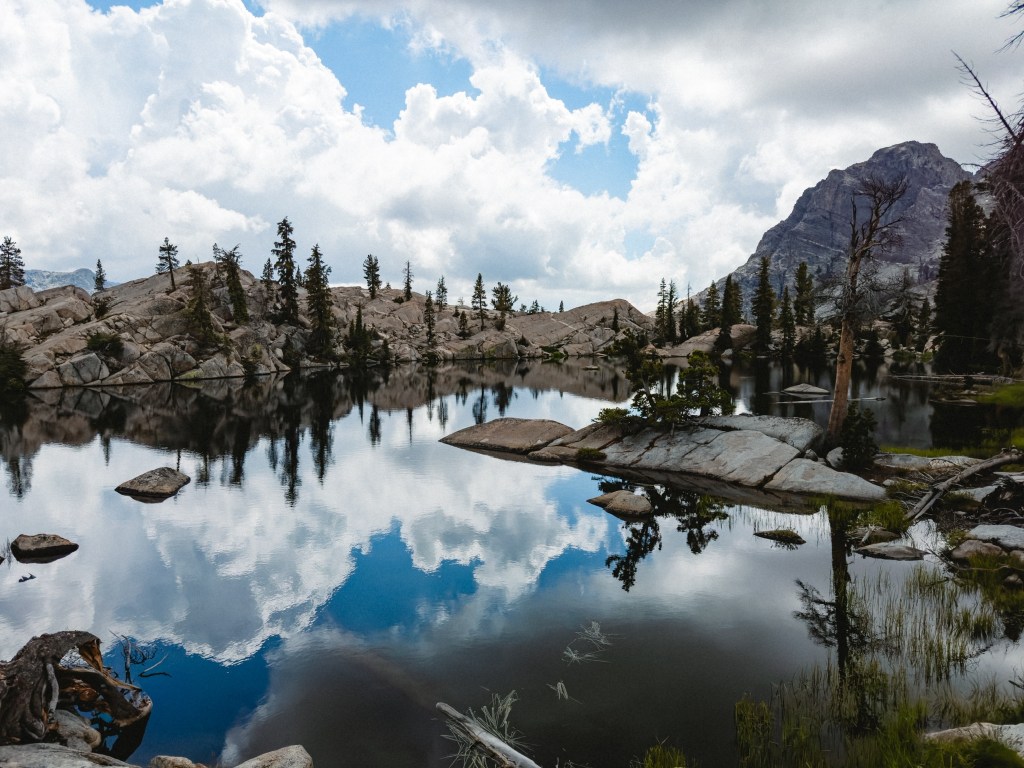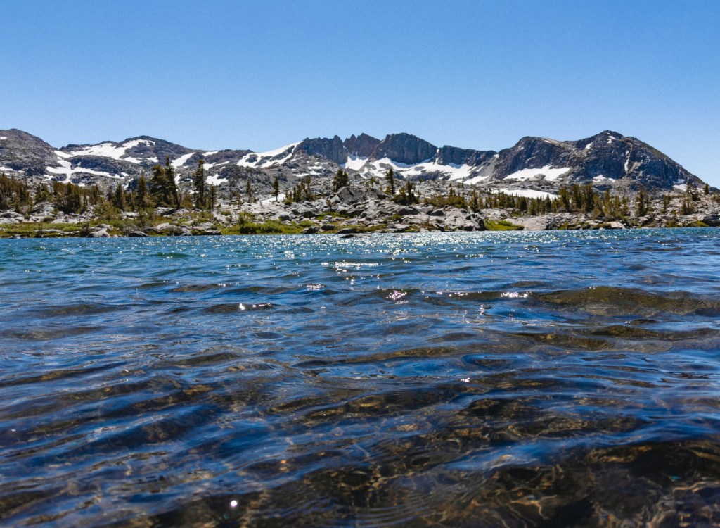 One afternoon we had just successfully crossed one of those nice creeks, and I had crossed in my Crocs. As I sat down to change back into my hiking shoes, mentally congratulating myself on my genius at not getting my shoes wet, the sky ripped open and belched pouring rain and hail down upon us. The 3 of us opened our sun umbrellas and crouched under them at the base of a climb, watching the endless beads of hail pinging around. We waited for the thunder to roll by before we resumed climbing. At the top of the climb, the sun had muscled its way back into prominence, and we came across a pristine, placid lake on the top of the peak. The light sparkled invitingly on the surface, rippling in the gentle wind. Dumptruck and I looked at our watches, then immediately took off our shirts and dove into the freezing snowmelt water.