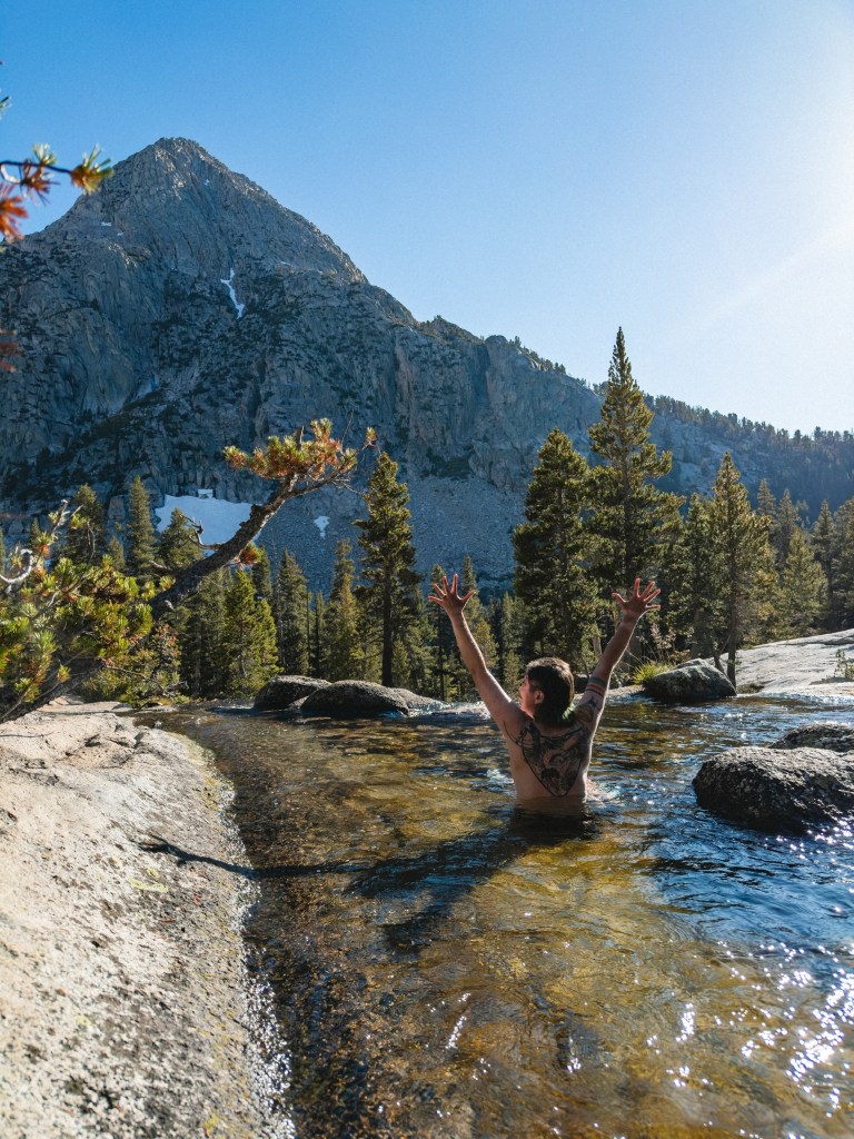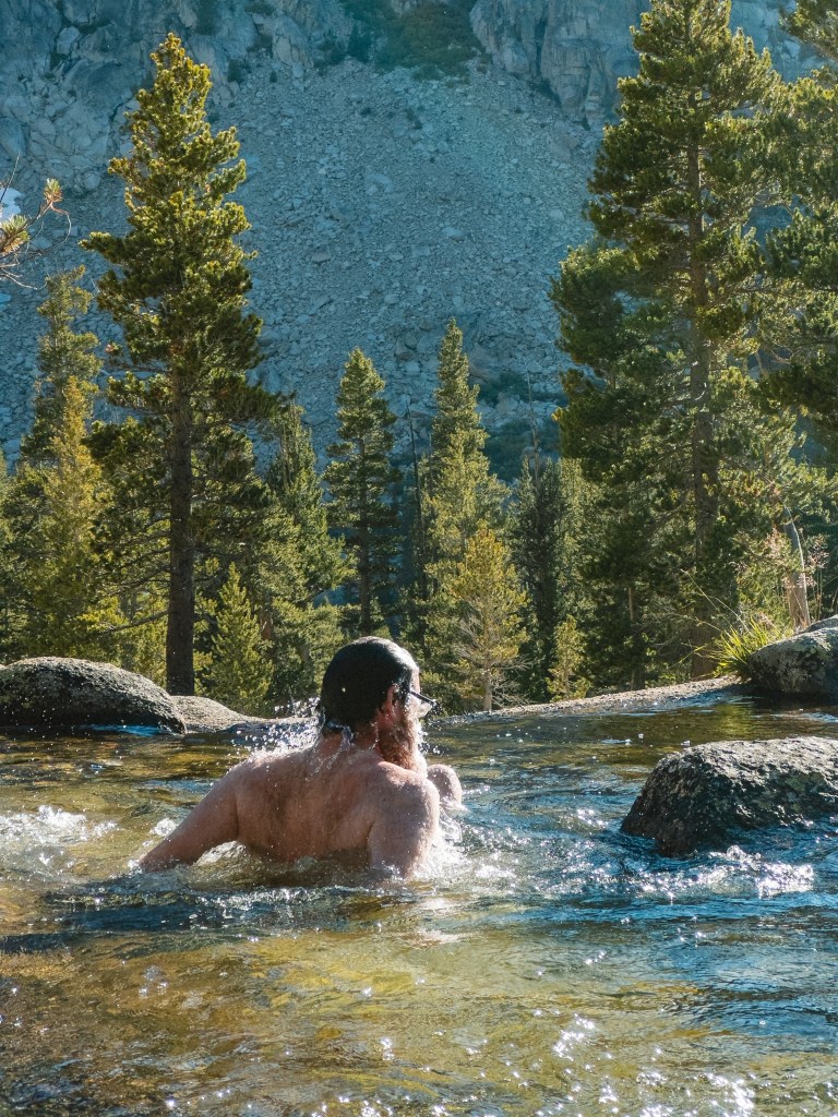 It has been 140 miles since my last post! In that time my wee sea baby lungs still haven’t adjusted to the 11,000+ ft altitude, which means that even though we are almost done with The Sierra, I am still breathing like if the Little Engine That Could had been smoking Pall Malls and fronting a hairmetal band for 40 years before taking up being a train. While it doesn’t directly impact my ability to hike, it does somewhat diminish my long-distance hiker credibility when, while interacting with day hikers, I can only speak for a moment before the words sound like they’re being wheezed into a can attached to another can by a string 30 feet long. I do like to think that this high altitude breath training means that when I return to the East Coast, where oxygen is plentiful, I’ll be able to finally accomplish my dream of crushing Celine Dion’s “All By Myself” at karaoke. A boy can dream.