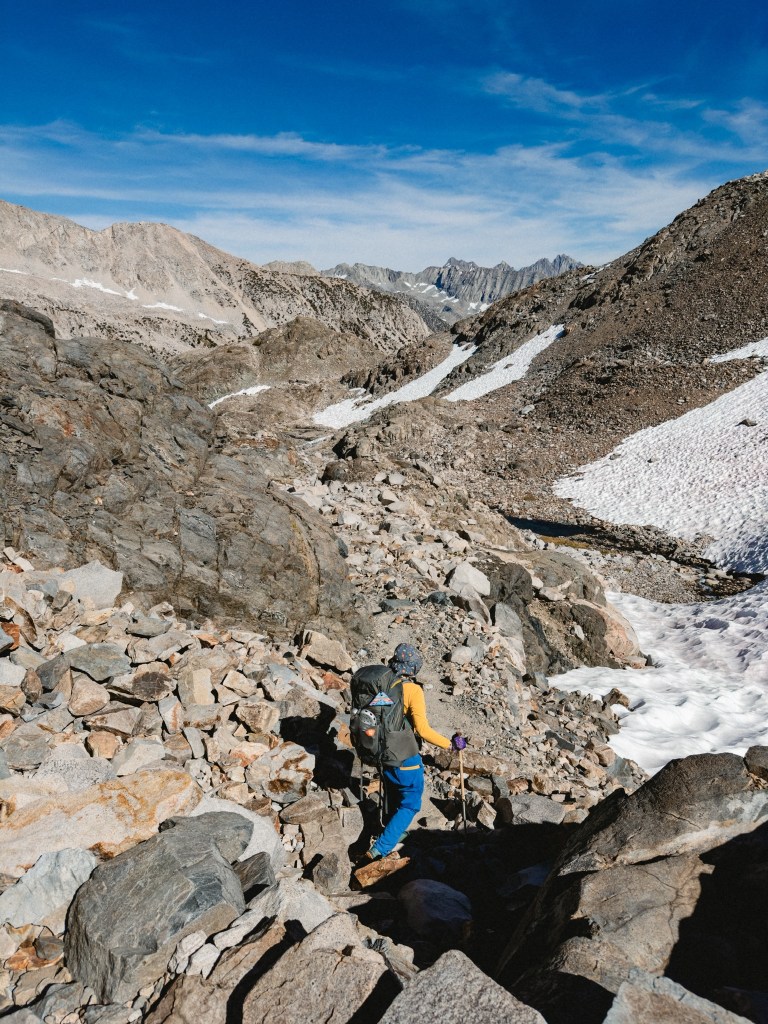 When we went back to the trail we had to tackle the nightmare road again, and unfortunately my motion sickness medication decided to not work, which meant that when we arrived at the trail head I had to take a 45 minute nap to unravel the cosmic nausea ricochetting around my trembling body. After I woke up and ineffectively wiped the drool off my face, we said goodbye to the resolute trooper of Toasty and headed back into the wilderness. We rapidly ascended, and every moment served exponentially more grand vistas as we traversed over passes (unfortunately named for old white guys), each more breathtaking than the ones before. On Muir Pass we had the pleasure of meeting and sharing lunch with several John Muir Trail hikers (the JMT overlaps the PCT quite a bit in this section). One hiker, Rebecca, was my leg hair twin, also lives in the North East, and was so kind.