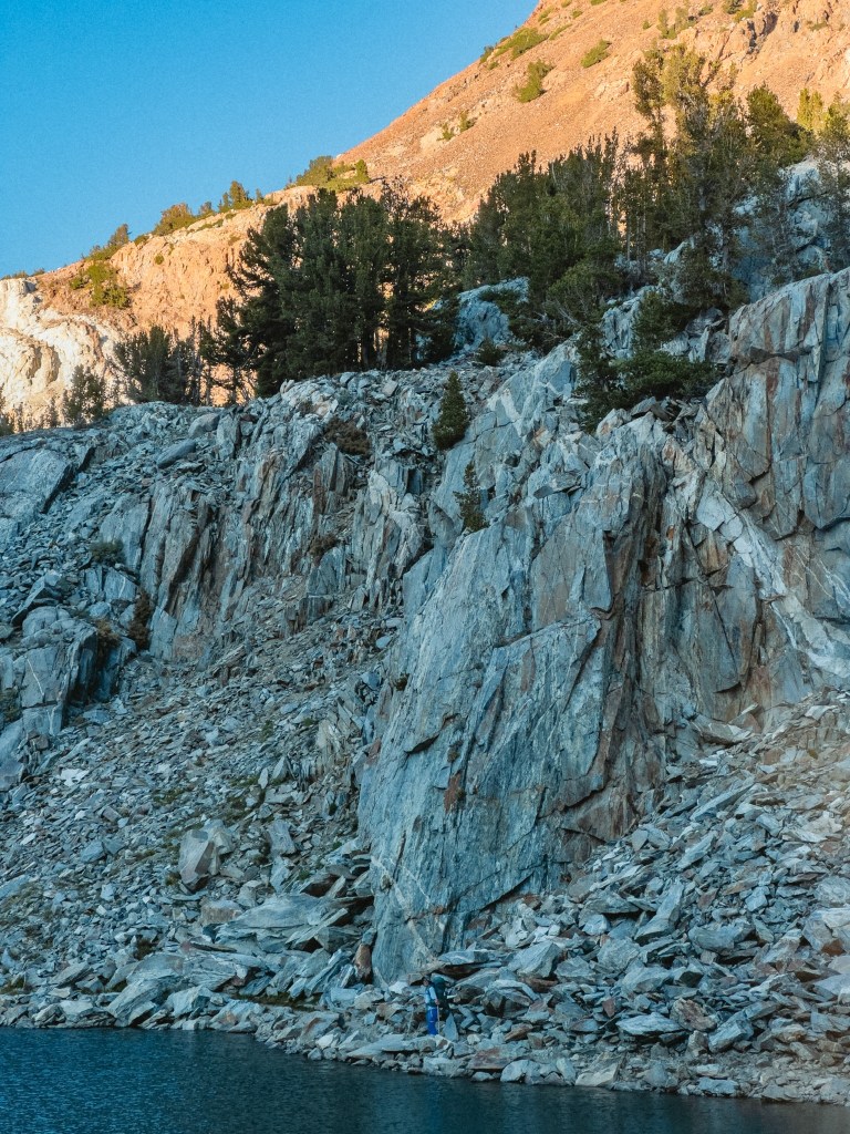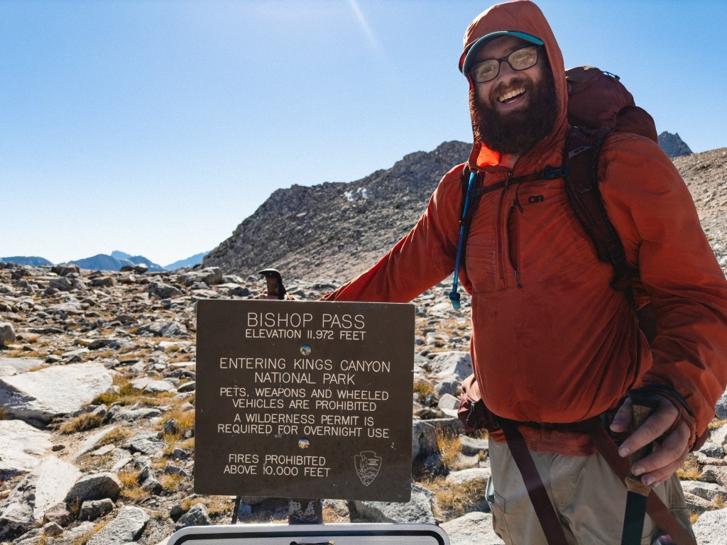 The 3 of us thusly hiked (very slowly) up the remaining 3,300 feet of elevation to the 11,965 altitude of Bishop Pass. It was a brutal, arduous climb, made all the more perilous with the now very top-of-mind fact that Argie’s hamstring was threatening decidedly to meet its maker.