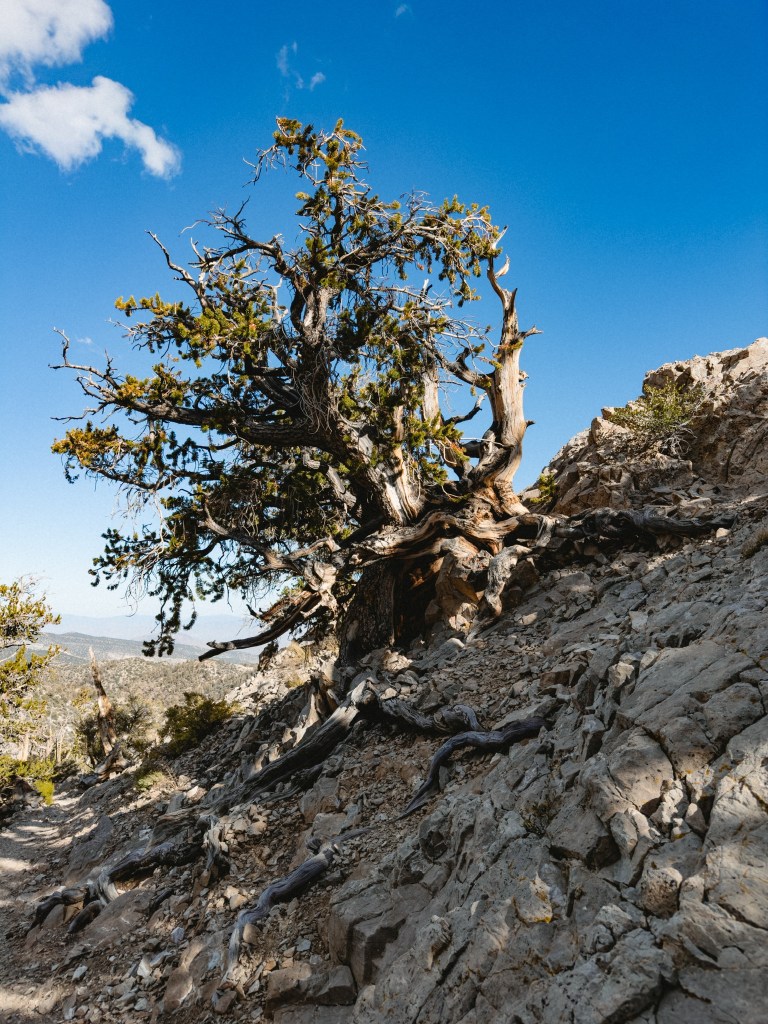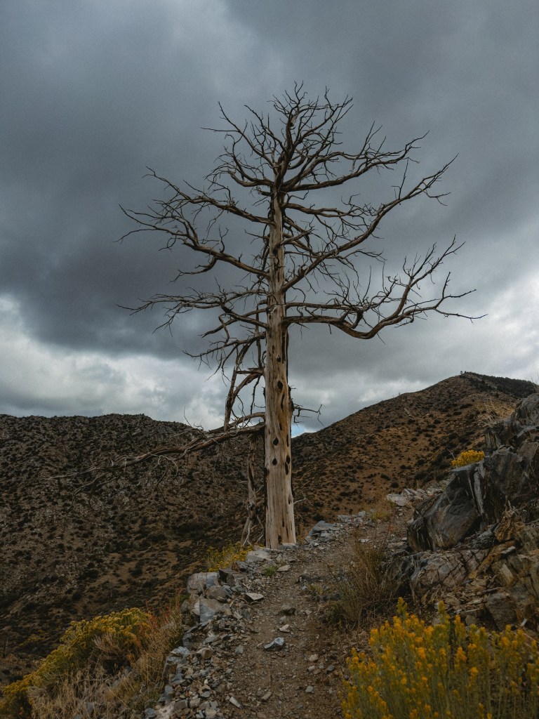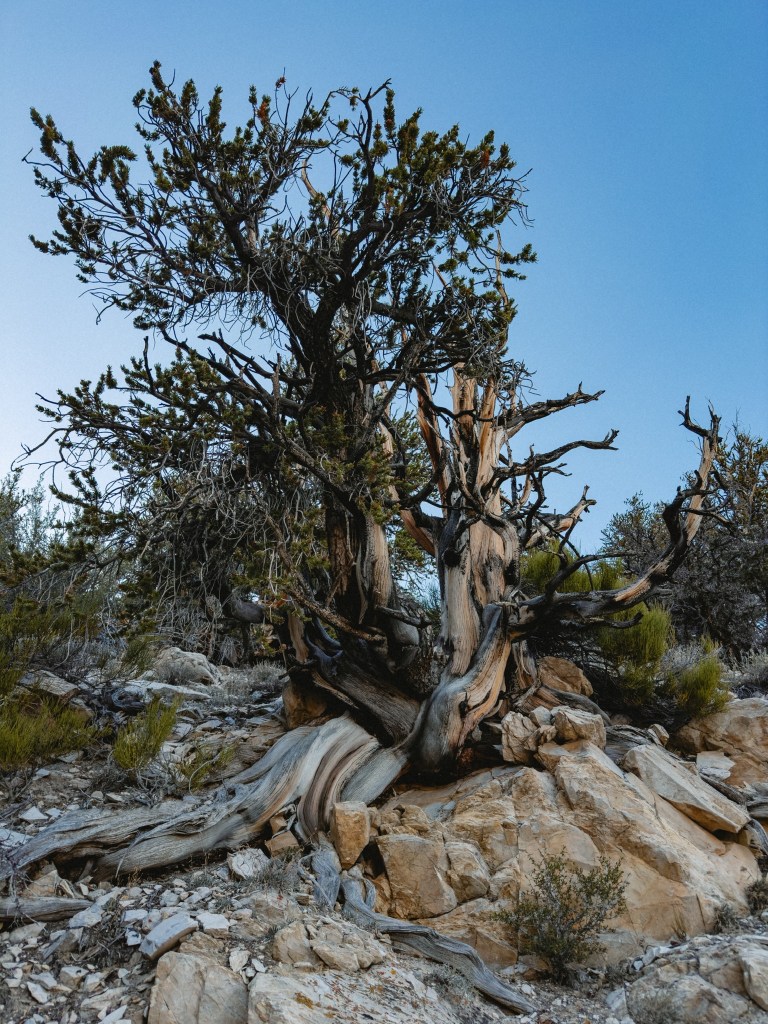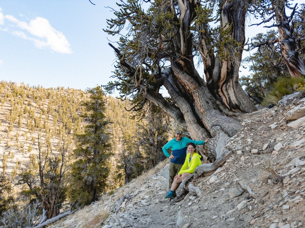 Before officially leaving Bishop, Toasty, Dumptruck and I made a side-trek to the Ancient Bristlecone Pine Forest, where the oldest known tree in the WORLD is living. The entire Bristlecone Pine forest is 1,000s of years old, but the oldest is 4,880 years old and is aptly named Methusela. Methusela is somewhere along the 4 mile loop trail through the forest, but his exact location is kept secret by conservationists to try and keep folks from messing with him or attempting to take pieces of him. Toasty, ever the sleuth, did a ton of research and was able to determine his exact location. I will absolutely not share that info here, nor any photos of Methusela himself. There’s a photo below of us with a (likely also 1,000s of years old) Bristlecone Pine, but it’s just a random one that we took a photo with on purpose to throw off the scent. All I can say is that we did find him, he was breathtaking, and I may or may not have cried some more while standing in his shadow. There is an increscribable peace that comes from being a small, fragile mammal who only gets maybe 100 years on this planet, breathing oxygen produced by a tree that rooted around the time that humans began to develop written language. At the tip of one of the branches dangled a small, new pine cone. Even now Methusela continues on, shepherding life into a world beyond time.