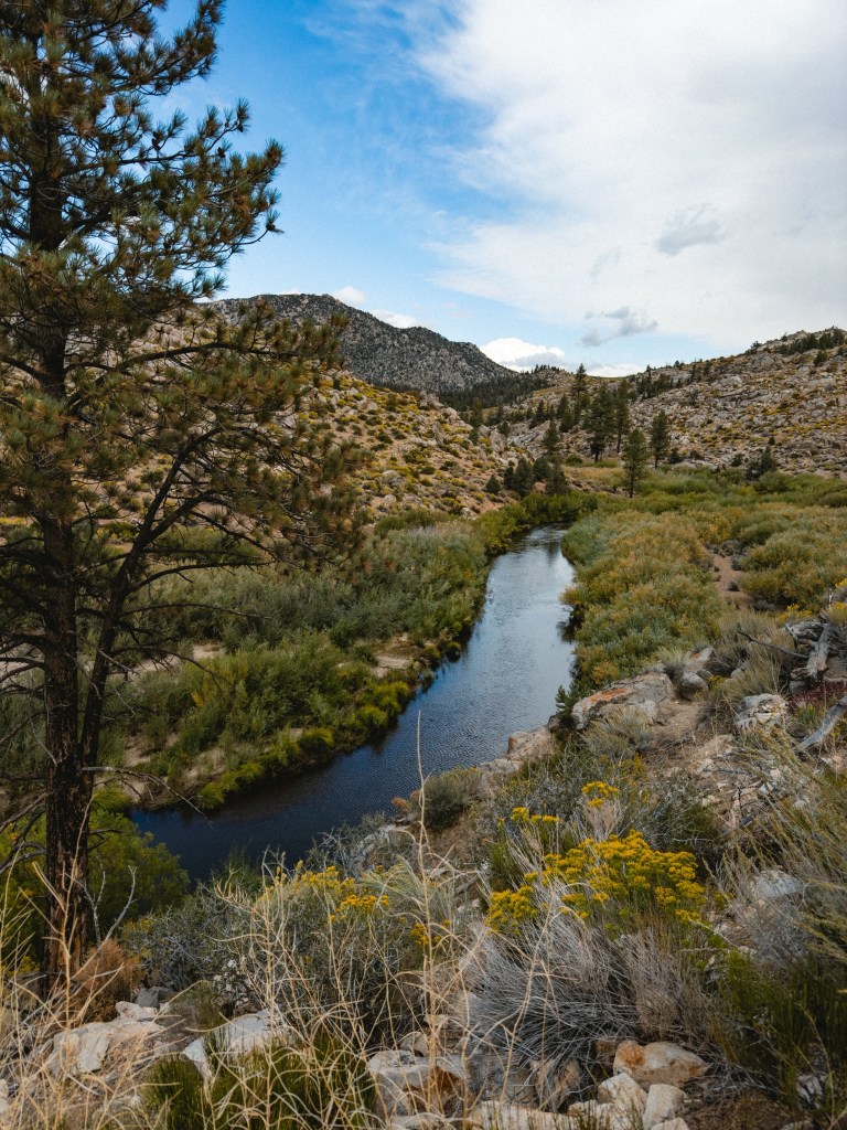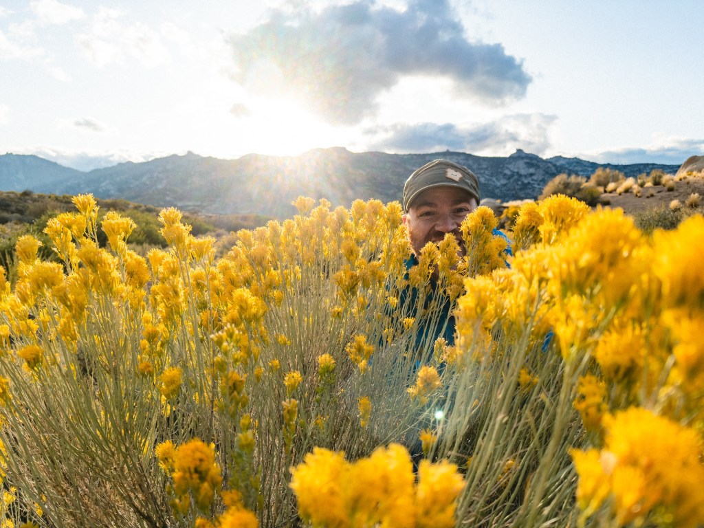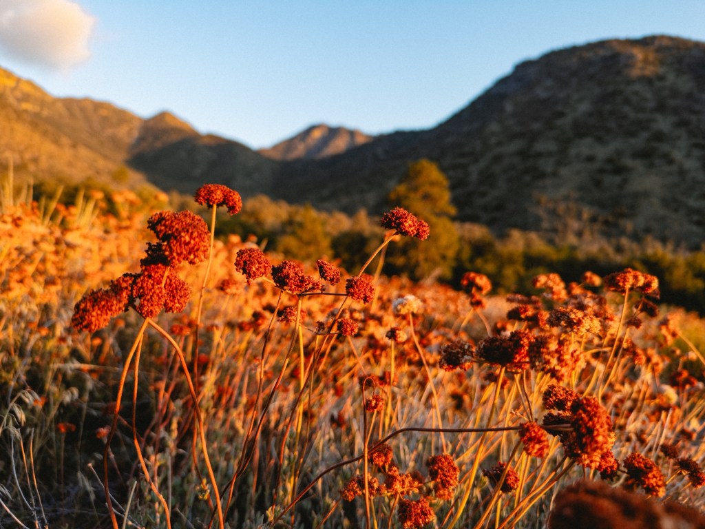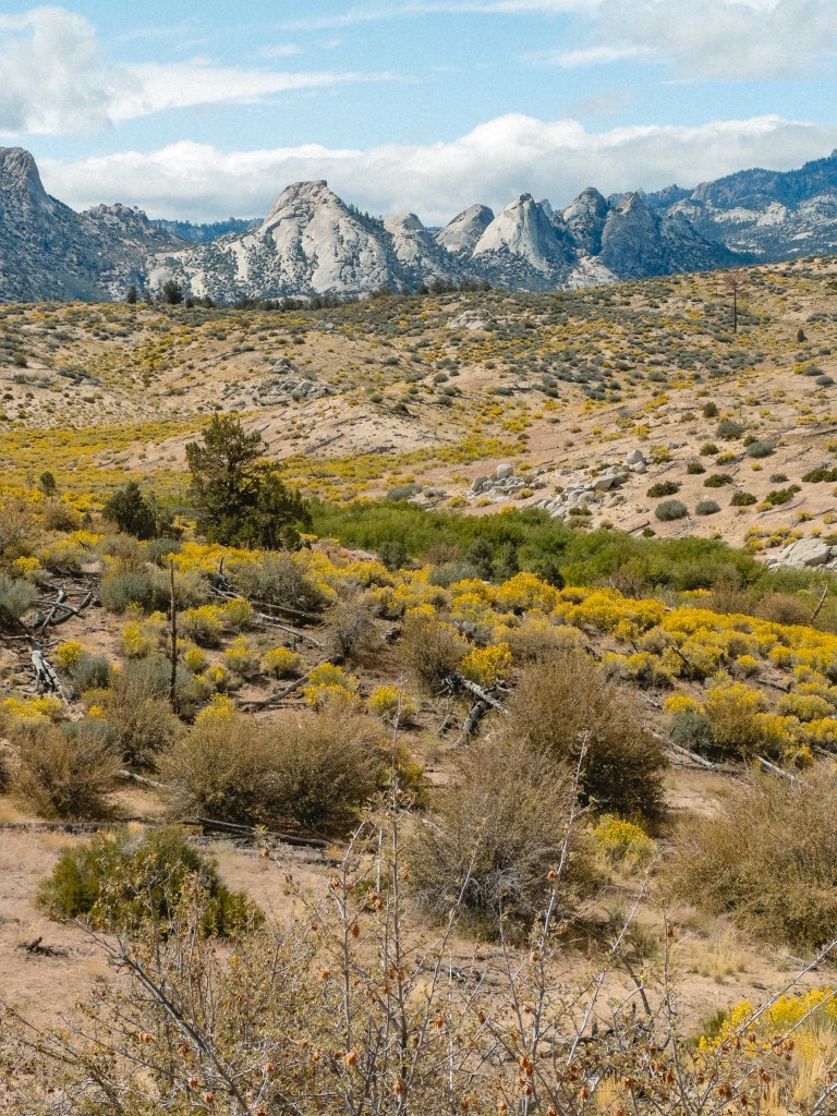 All of the plants are far past bloom, but to be disappointed would be an insult to the beauty that remains. There are fields of fluffy, tiny pink bushes that make me feel like I’m hiking through a field of cotton candy. Brilliant yellow stalks wave in the wind and bright sunlight, while soft bushes of mint-green poof out sunny pollen as we hike through them. Water sources are getting few and far between, but we can see them from miles away, bright green glades nestled into the crevices of mountains, oases of trees and clear, burbling springs. Walking into these glades feels like walking into an air conditioned store in the middle of brutal summer, the cool air like a portal to another dimension.