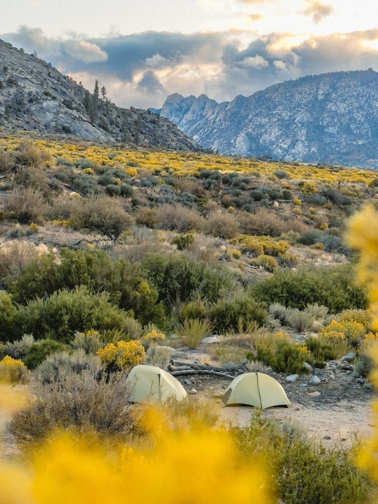 Toasty was able to hike in with us on the first day and camp, then he hiked back out the next morning. That day we ended early at a water source, sheltering under the only tree for miles to play poker for candy and watch the sun set through the thick clouds at the edge of the storm that was obliterating the southern Sierra. We got one moment of a sun shower, tiny drops of rain glittering magically in the orange evening air. The next morning we woke with ice on our tents.