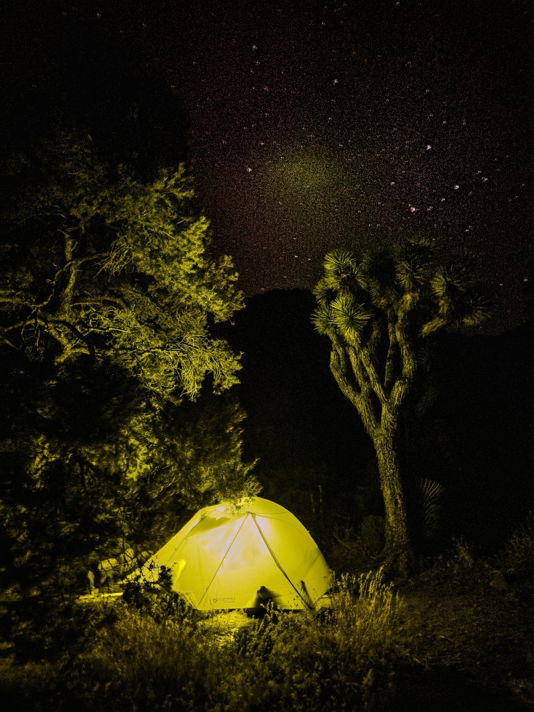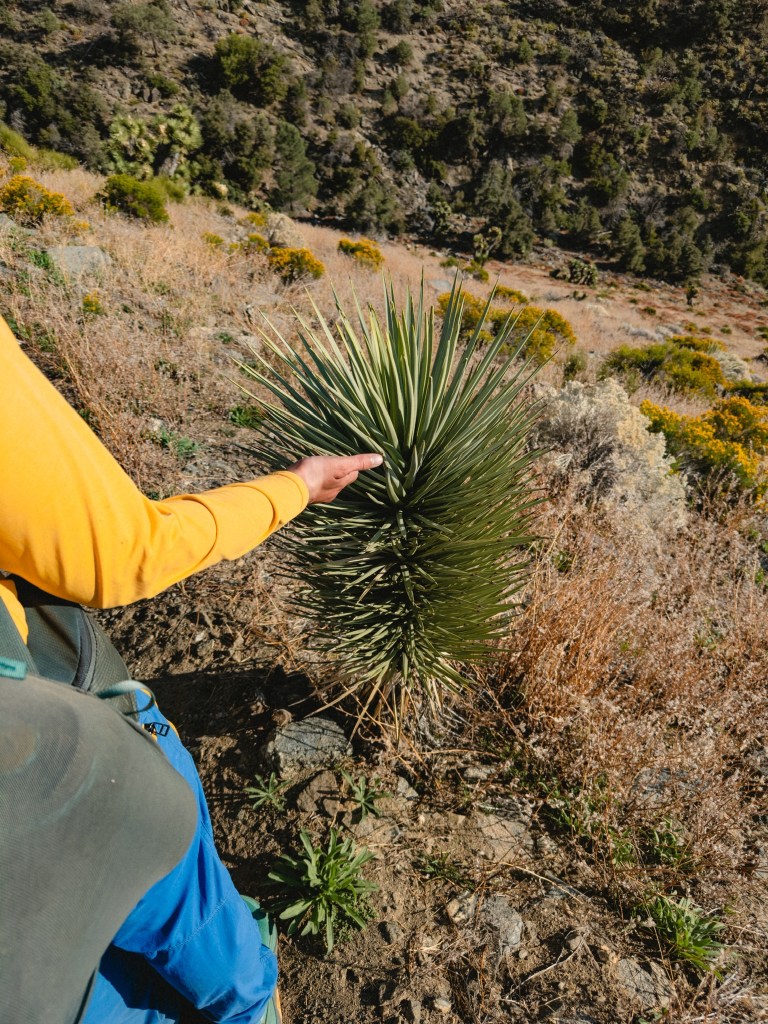 After a pass we crossed an invisible line into Joshua Tree land, and there were suddenly Joshua Trees everywhere. They are so stunning, and also quite pokey. One even punctured Dumptruck’s reserve water bladder as he squeezed past it, soaking him and his backpack in a gush. We camped beneath a huge, gnarled and old one, its thick branches sheltering us beneath an enormous desert sky strewn with stars.