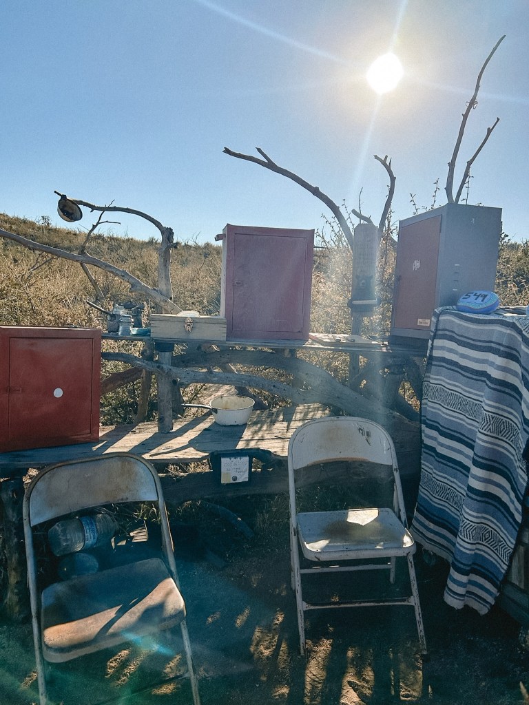 At 3am I woke up to use the bathroom, and made my way across the open dirt square to the small building that housed the restroom and small kitchen. When I opened the door, my lizard-delivering cat friend awoke from her spot on a chair and wound around my feet mewing until I pet her. She purred furiously and made little biscuits on my toes while I washed my hands. She also tried to give me a (blessedly dead) spider.