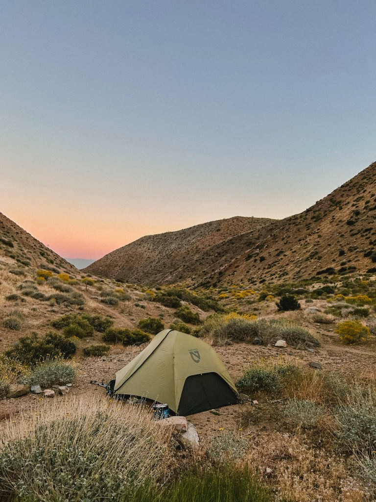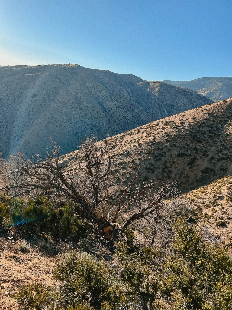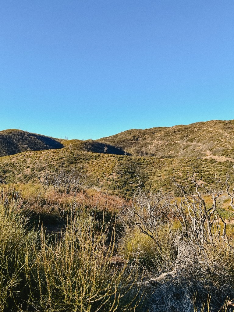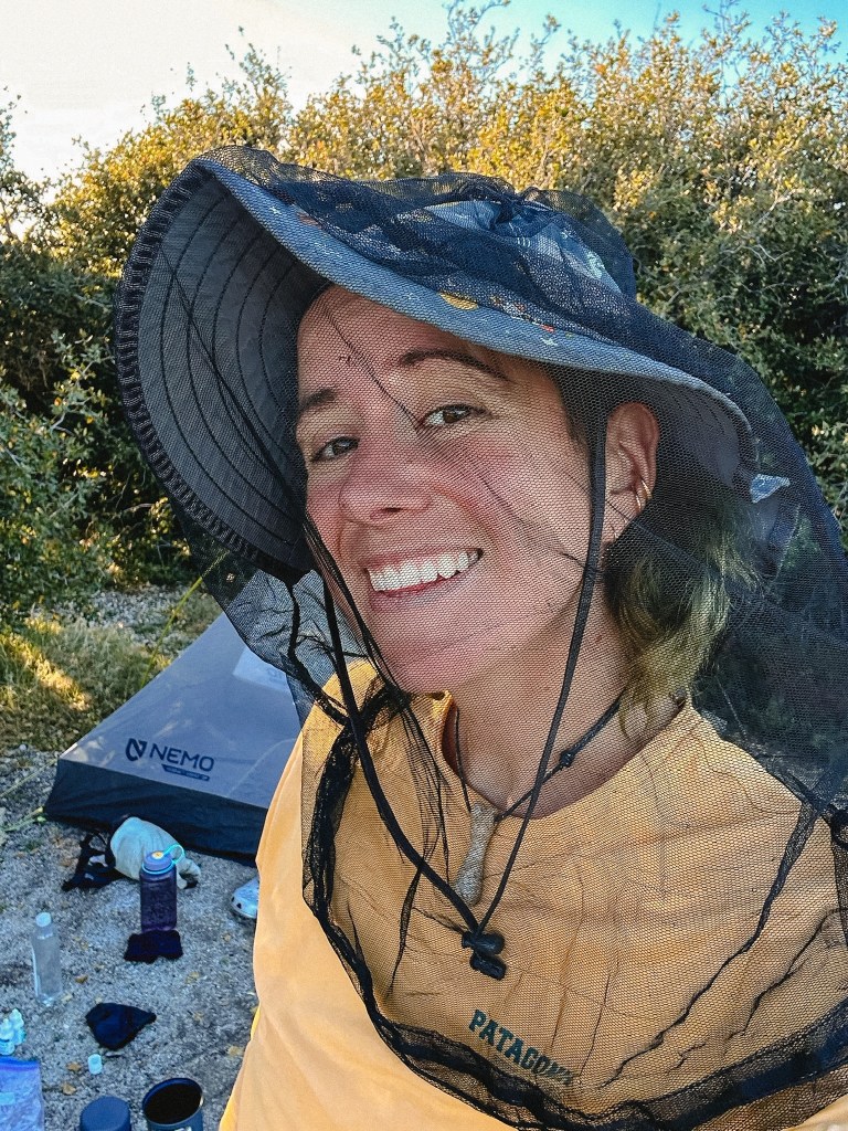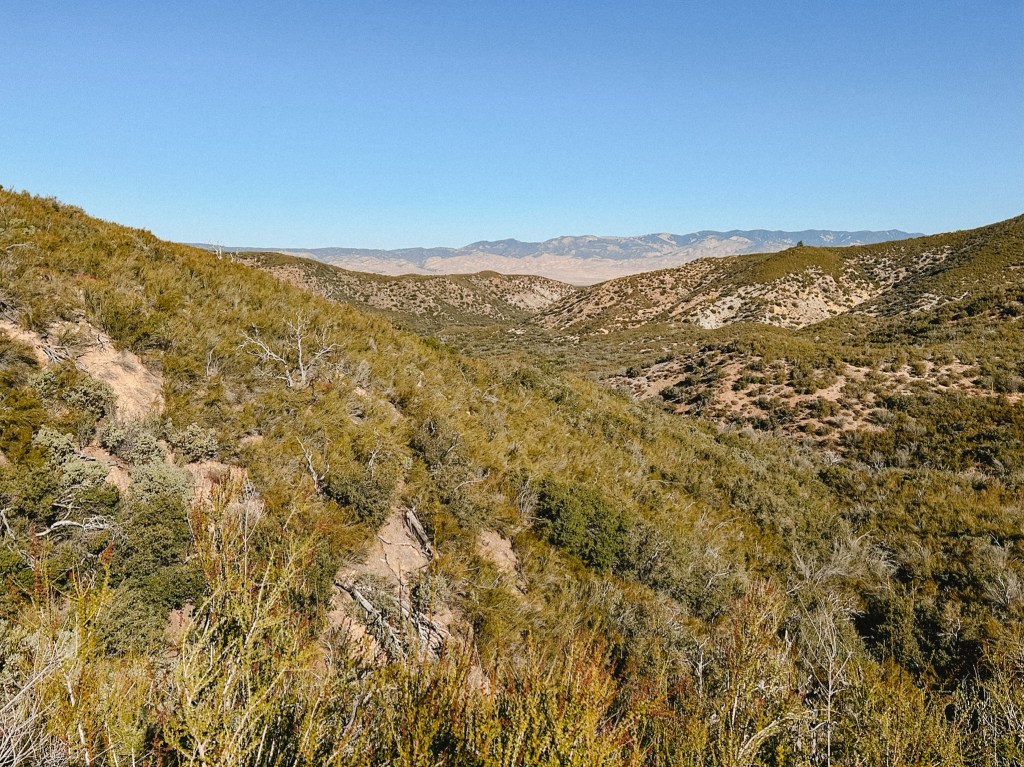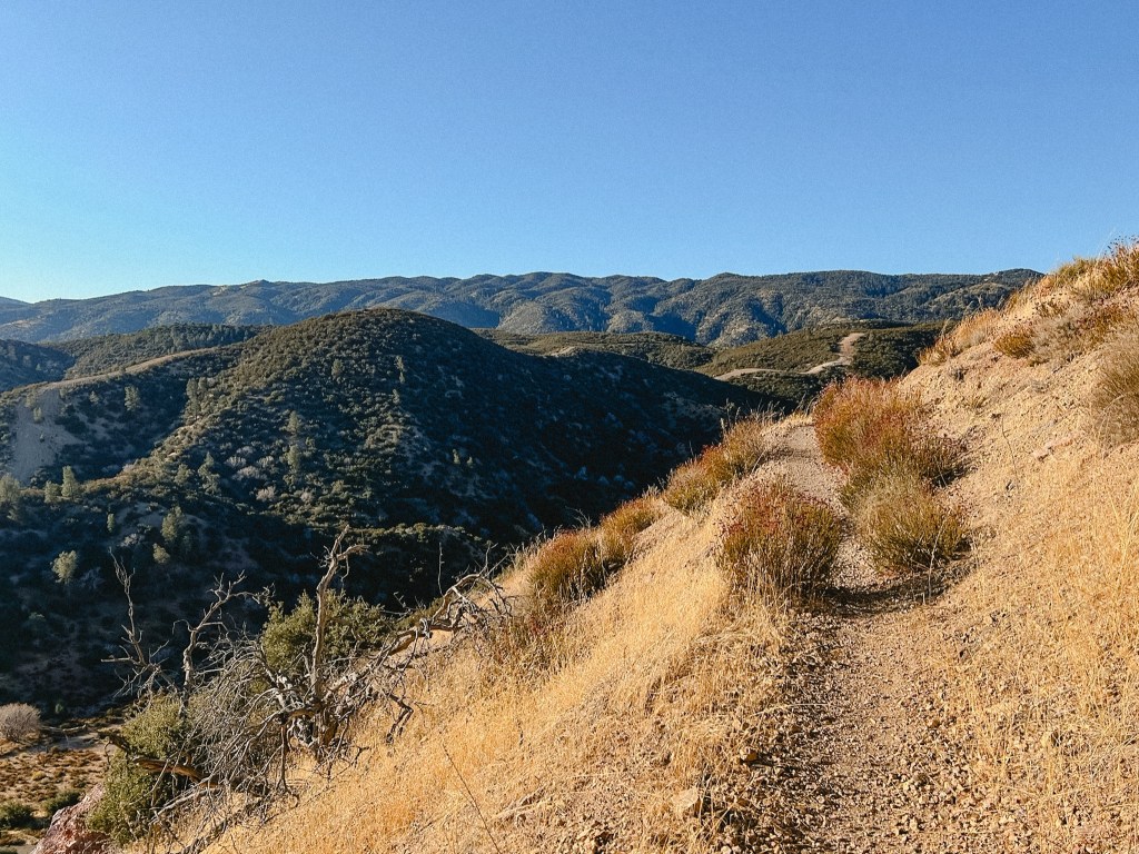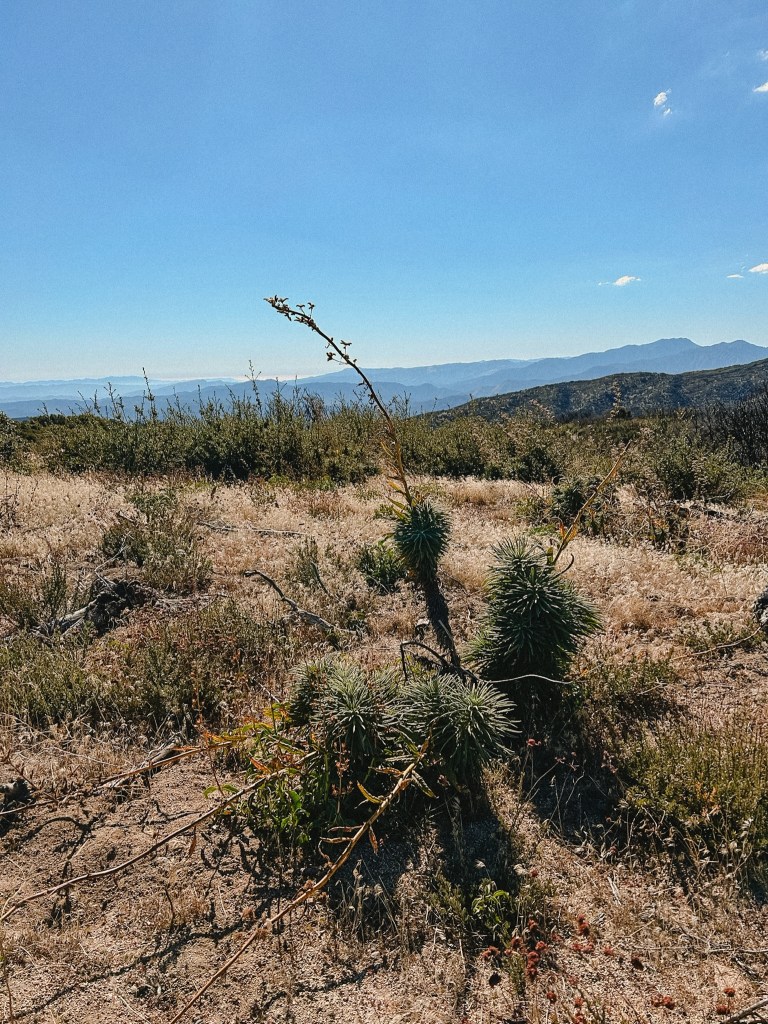The rest of this section took me back up into desert mountains, which brought a welcome resurgence of tall plant life that offered shade. However, the tall plant life is all different varieties of spiny, thorny bushes that have knitted themselves together across the trail, making hiking feel a bit like being thrown into a burlap sack with a bunch of angry ferrets. Also, the gnats are so thick that I’ve had to wear my headnet from the moment I emerge from my tent in the morning until the moment I get back into it. The headnet gets repeatedly caught on the tall thorny bushes and yoinked back across my face like a very ineffectual murderer is attempting to suffocate me, except joke’s on them, the only thing that gets murdered is my dang patience.