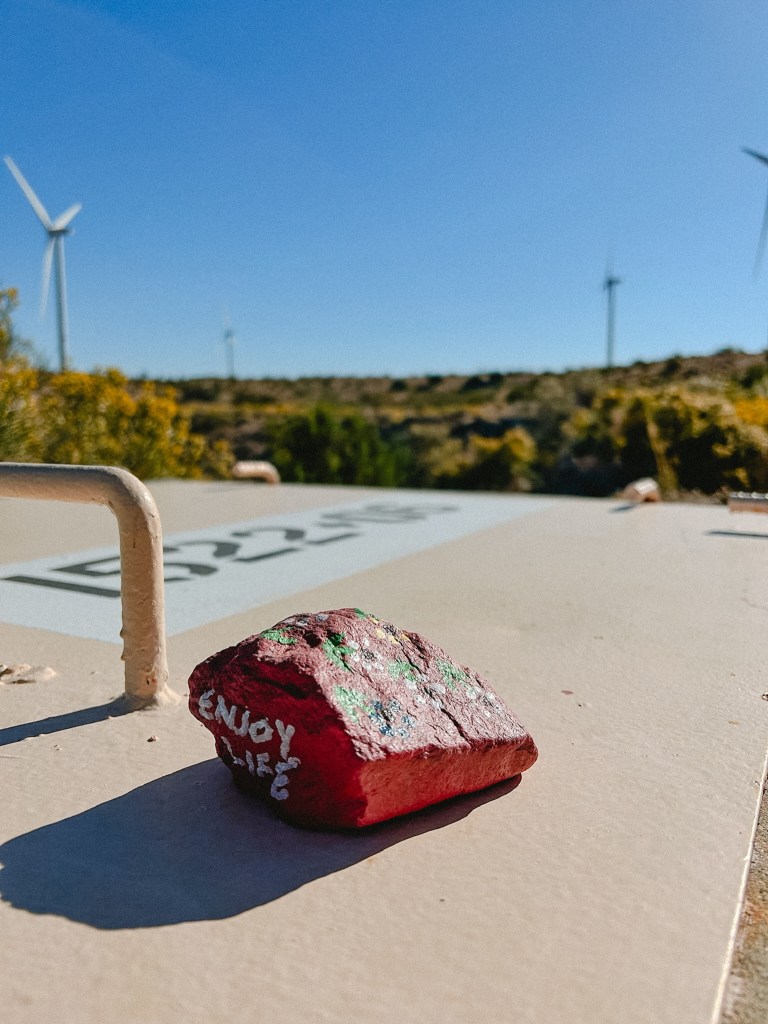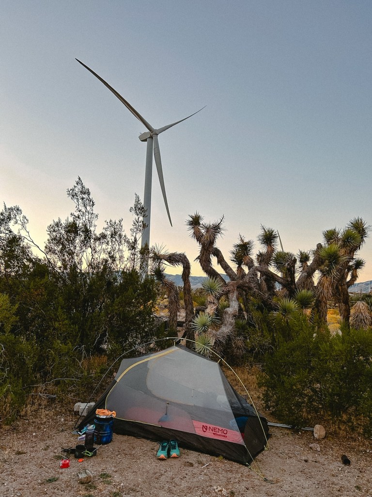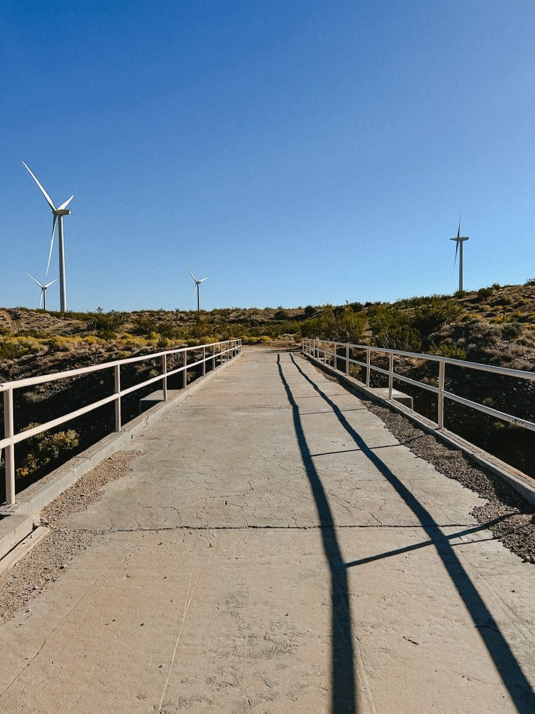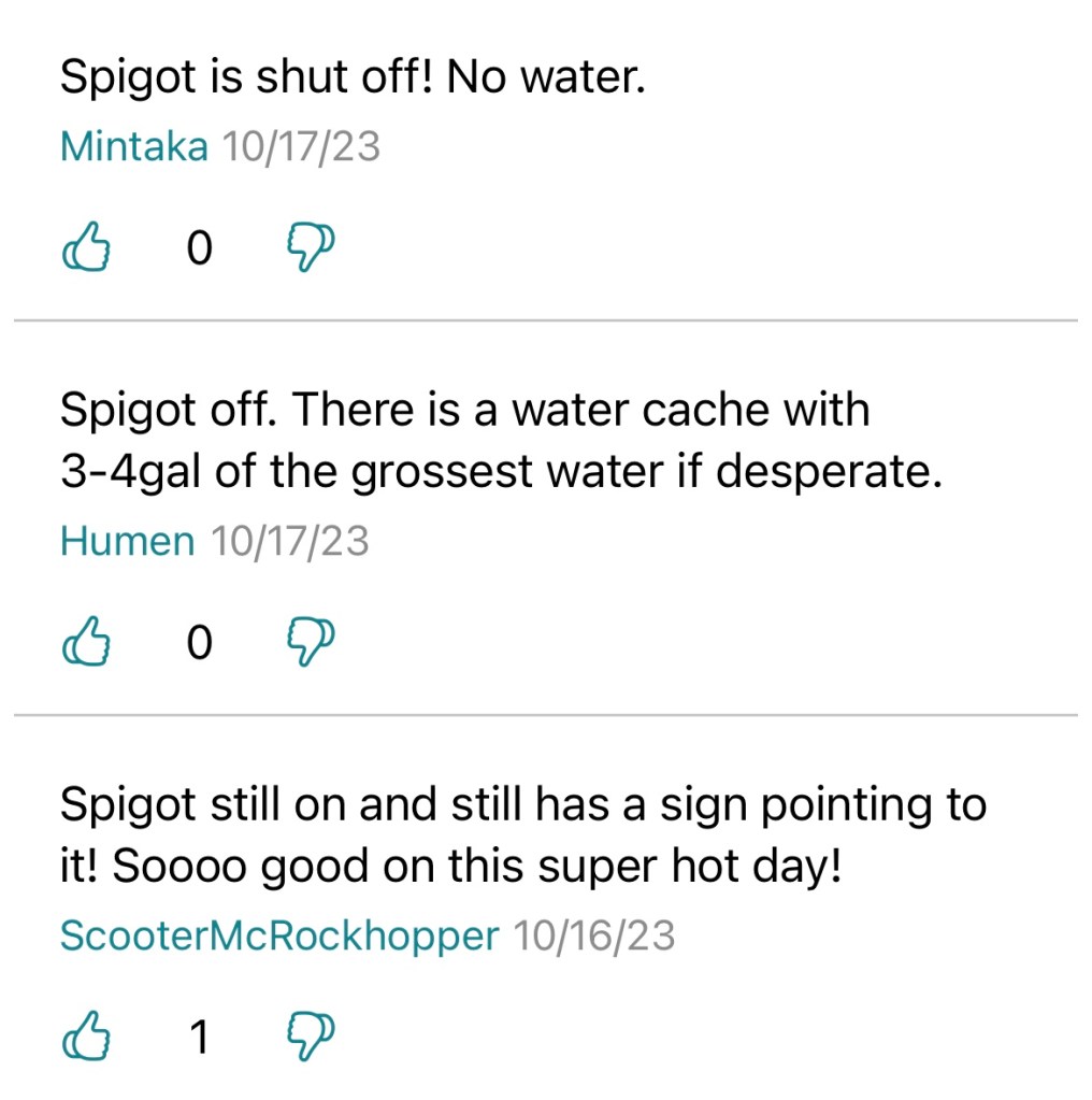 I drank a full liter and filled 2 more, plenty to get me to the next source in 6 miles. The next source was marked as a spigot on a concrete box that was an offshoot of an underground aqueduct. The last comment from another hiker on FarOut was from 10/16 (this day for me was 10/18) and said that the spigot was on, functional, and excellent. So I hiked on, through an endless landscape of gigantic white windmills turning lazily in the slow, intermittent breeze. About a quarter of a mile from my destination I checked FarOut again. It had 2 updated comments from the previous day, that hadn’t loaded when last I’d checked.