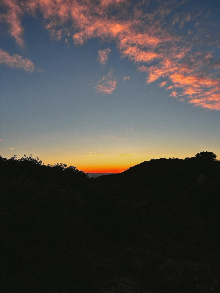 Hiking alone has, so far, genuinely been quite a wonderful journey. On Friday night I sat atop a concrete water tank, my feet dangling as the sun slowly sank behind the low desert mountains. As the sky turned to total darkness and stars popped out one by one, I watched a slow, brilliant meteor dazzle its way across Orion before fizzling out. I said a distant hello to Halley’s Comet, as the last time she came around was the year I was born, and she’s about halfway through her orbit back, shedding her meteors as she goes.